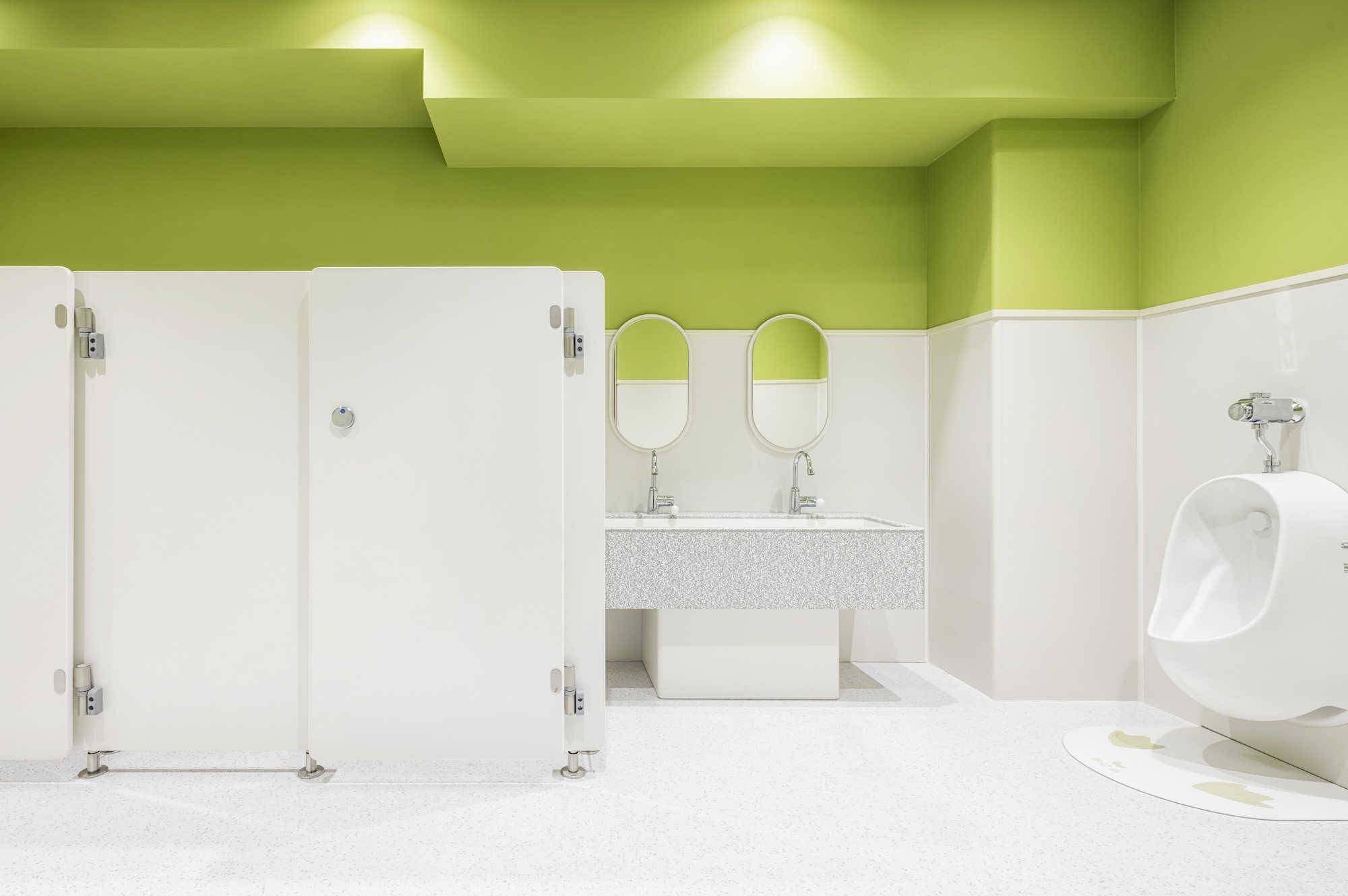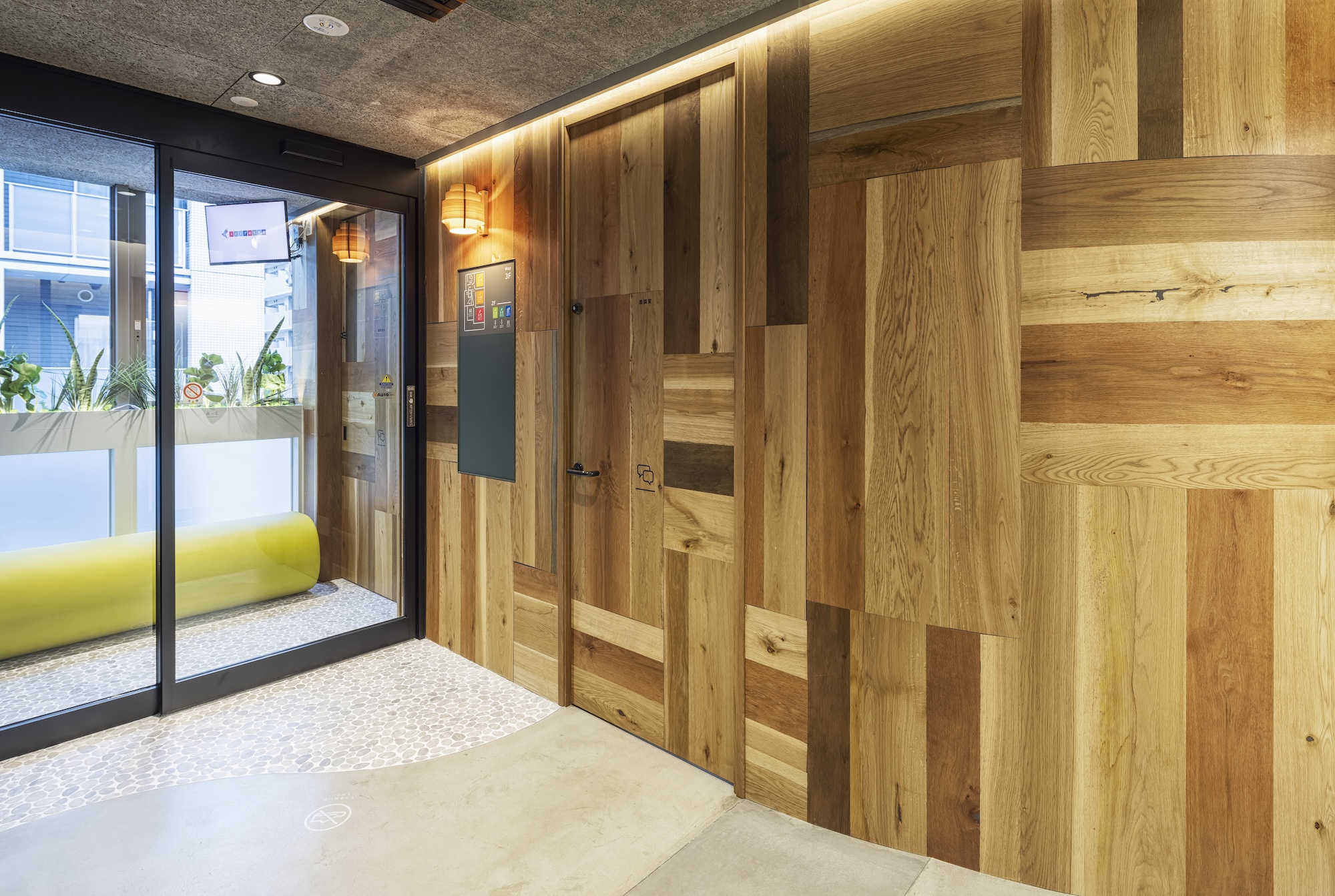 都市の中にありながら、木に触れ、森へとつながる感覚を育む学びの場。ラフな木質とグリーンを基調に仕上げられた、山小屋のような“僕たちだけの秘密基地”は、子どもたちの緊張をやわらげ、ワクワクする気持ちや探究心を引き出します。